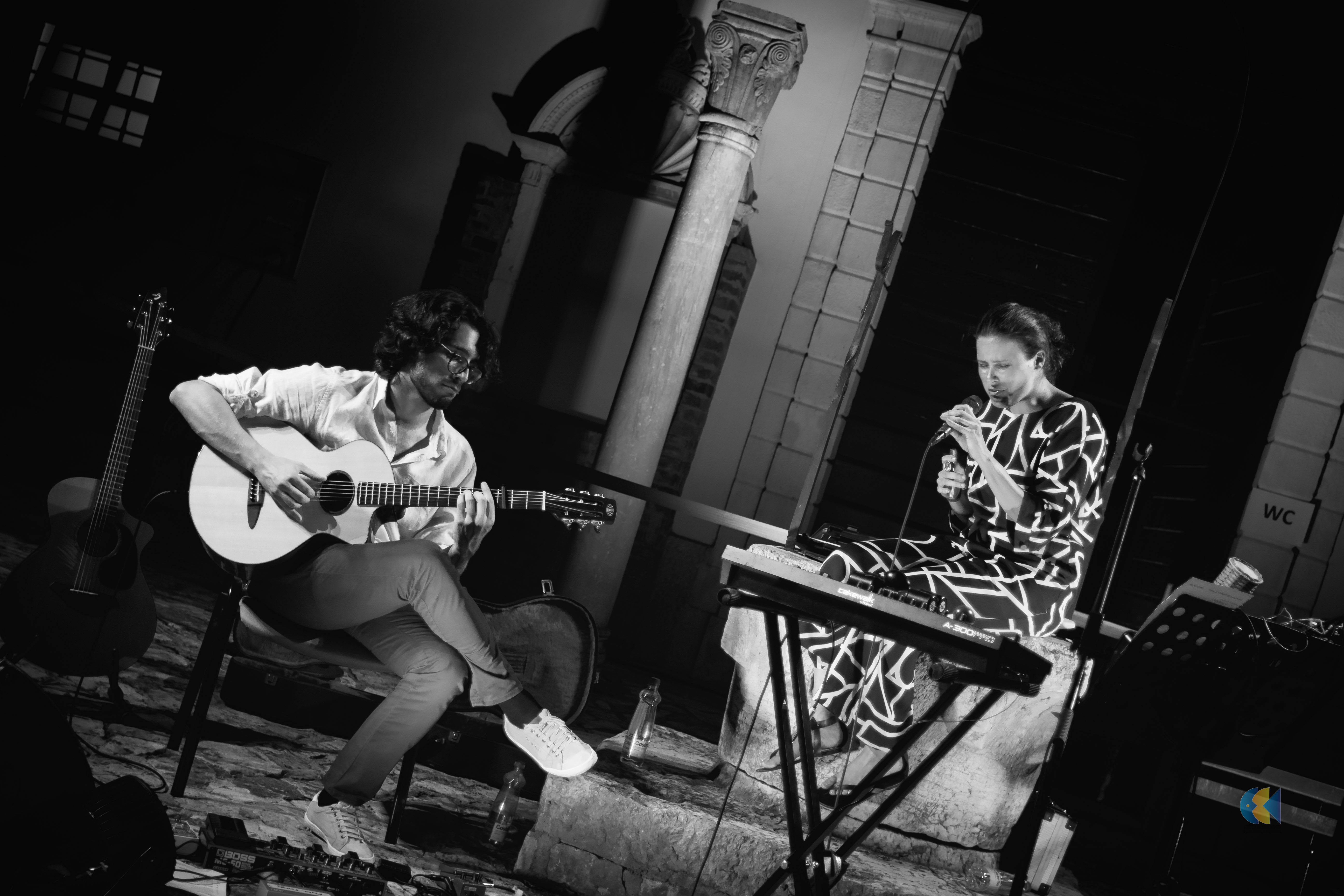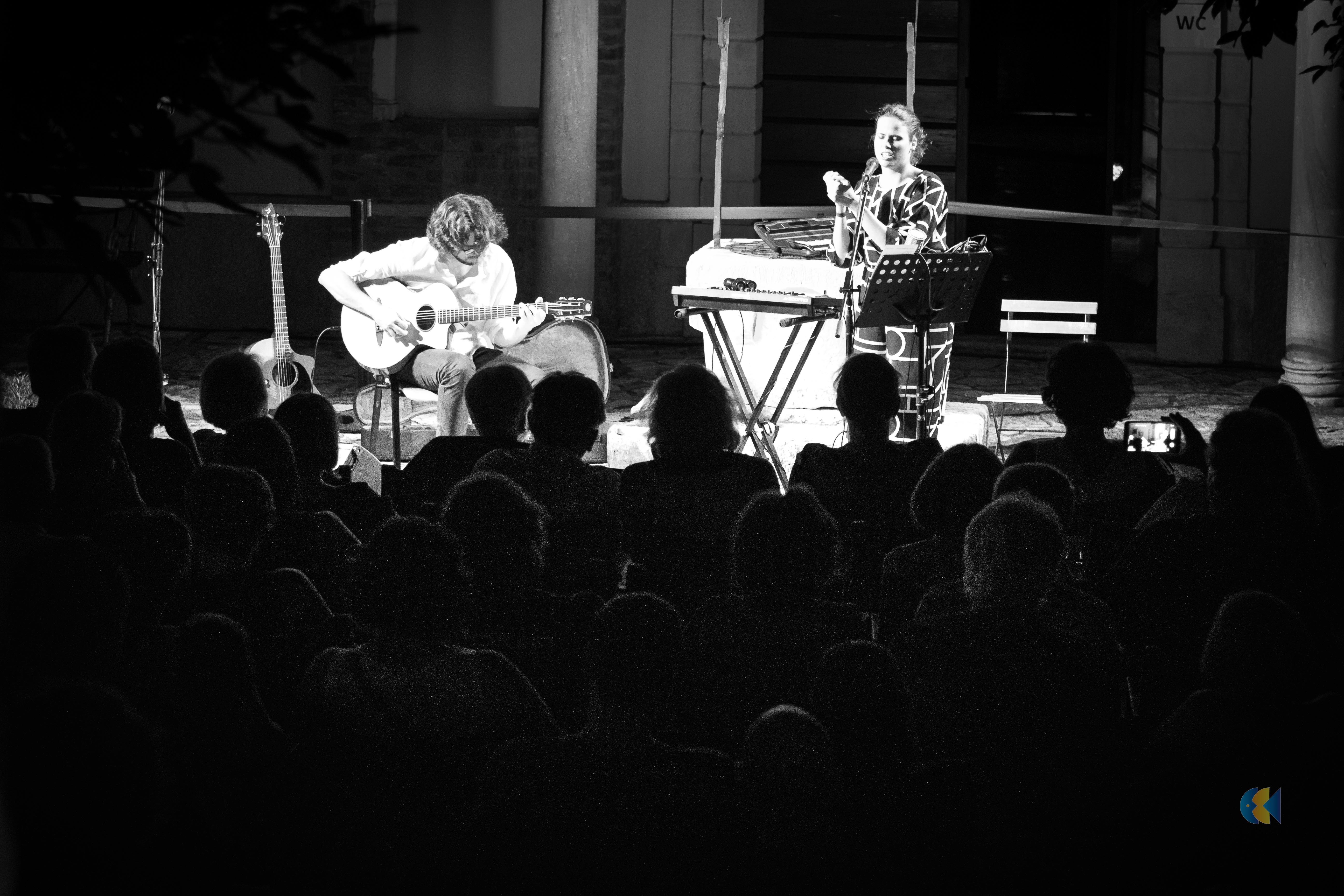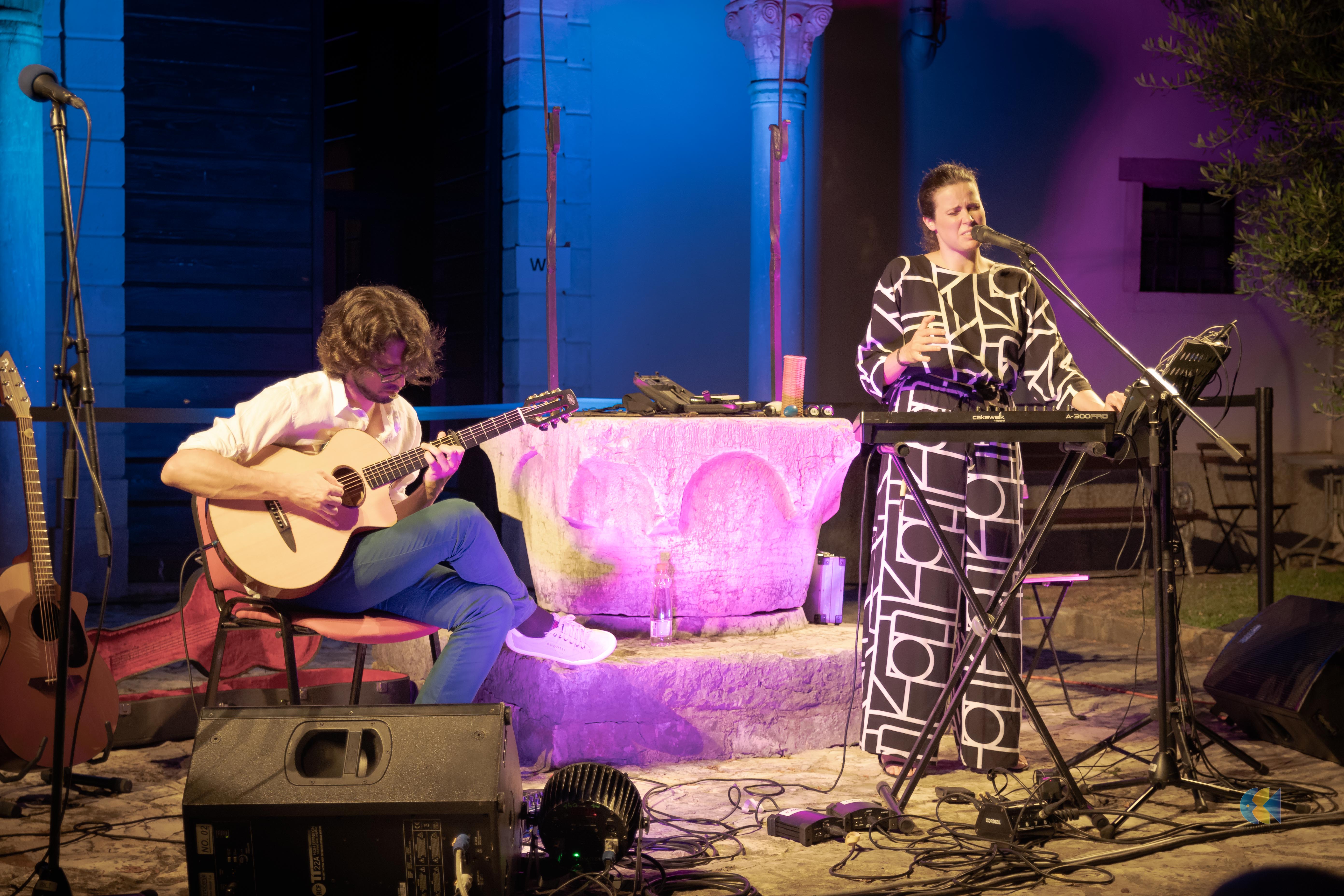 Po razprodanem uvodu v Poletje z biseri, ko je občinstvo v lapidariju Pokrajinskega muzeja Koper razvajal Rudi Bučar in razigranem sredinem večeru, ko so vrt ob Neci Falk in mačku Muriju napolnili tudi otroci, sta na festivalu nastopila Alba & Leo.