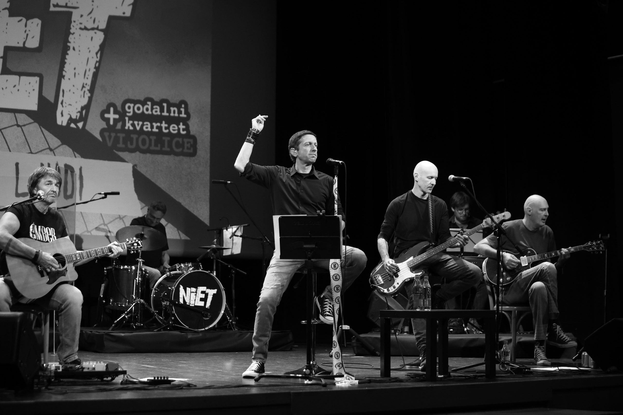 V petek 17.10.2025 je v Gledališču Tartini bil na sporedu drugi večer sezone cikla koncertov “Piranski glasbeni oder”. Izštekani NIET ob spremljavi godalnega kvarteta Vijolice so napolnili piransko gledališče in pričarali prekrasno vzdušje. Po pomladni turneji z naslovom “V bližini ljudi” skupina Niet z godalnim kvartetom Vijolice in klaviaturistom izvedla še jesenski del turneje akustičnih nastopov, ki se je zaključila prav s koncertom v Piranu. Poleg članov skupine Niet, ki jo sestavljajo pevec Borut Marolt, ustanovitelj ter pisec večine pesmi in ritem kitarist Igor Dernovšek, solo kitarist in spremljevalni vokal Robert Likar, bas kitarist in spremljevalni vokal Janez Brezigar ter bobnar Tomaž Bergant-Breht so se pri projektu Izštekani Niet pridružil še klaviaturist Leon Firšt ter seveda godalni kvartet Vijolice, ki z Nieti sodelujejo že od leta 2008. Vijolice, ki so polepšale in pomladile nekaj starejše punk rockerje nastopajo v zasedbi: prva violina Polona Češarek Puklavec, Andreja Jamšek kot druga violina, viola Ana Šimec in čelistka Marjetka Skoberne Cvetek.