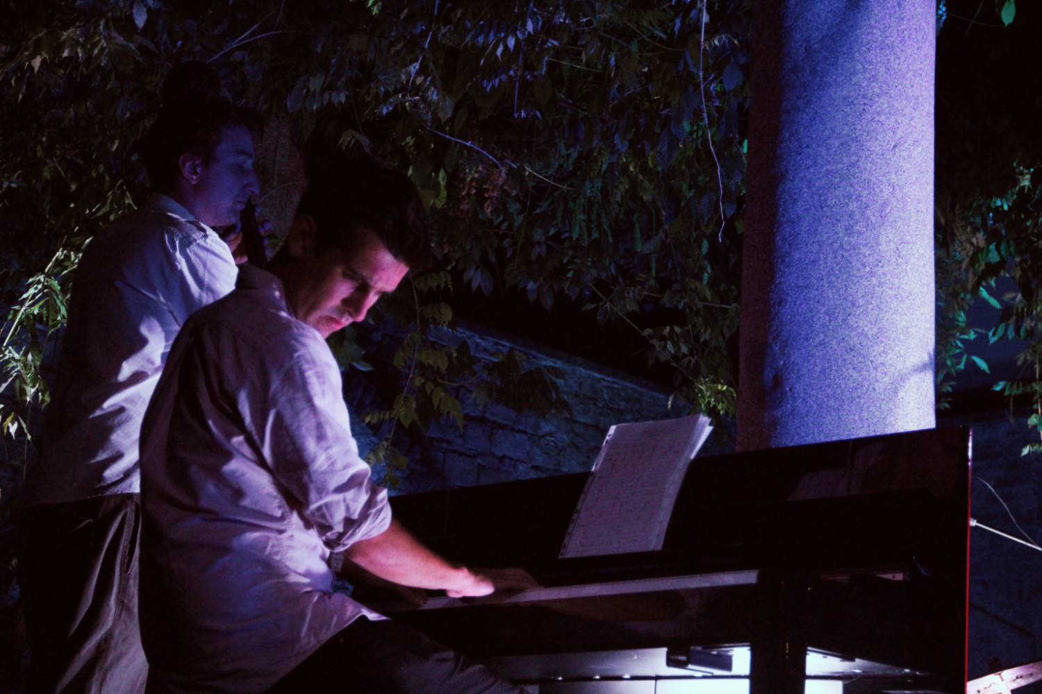 “Čez dan je postalo kar naenkrat zelo pestro. Ko sem že mislil, da vse štima, ko sem postavil še zadnji dodatni stol, spet so namrecč zadnji dan kupovali vstopnice in sem si dal opravka z dodatnimi sedišči (čeprav mi je Nina Cameral rekla, da preveč razvajam folk ~ jaz pa si mislim, da za 15 eur mora dobiti stol… najbrž ima Nina prav, ne nazadnje gre za glasbeni dogodek na edinstveni lokaciji), se mi je pokvarila tudi rezervna klaviatura, ki sem jo nameraval posoditi tistemu mojstru iz Manchestra (op.p. Jamie Safir). Mimogrede, kasneje se je izkazalo, da je res mojster. Poklon do tal. Pa ne samo njemu, tudi ostalim. S sestrama ~ to sem včeraj pred koncertom izvedel ~ ki sta dobili ime po noni in hotelu v Izoli, vred.